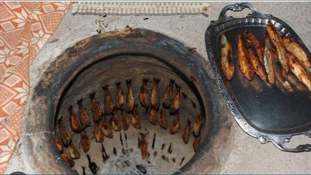 Dema ku nan li tenûrê dixin û agirê wî hinek ditemire. Ew masiyên ku şor kirine wekî nan li dîwarên tenûre dixin û nêzî bîst deqeyan di tenûrê de dimînin. Dûre jî ji bo xwarinê amade dibe.
