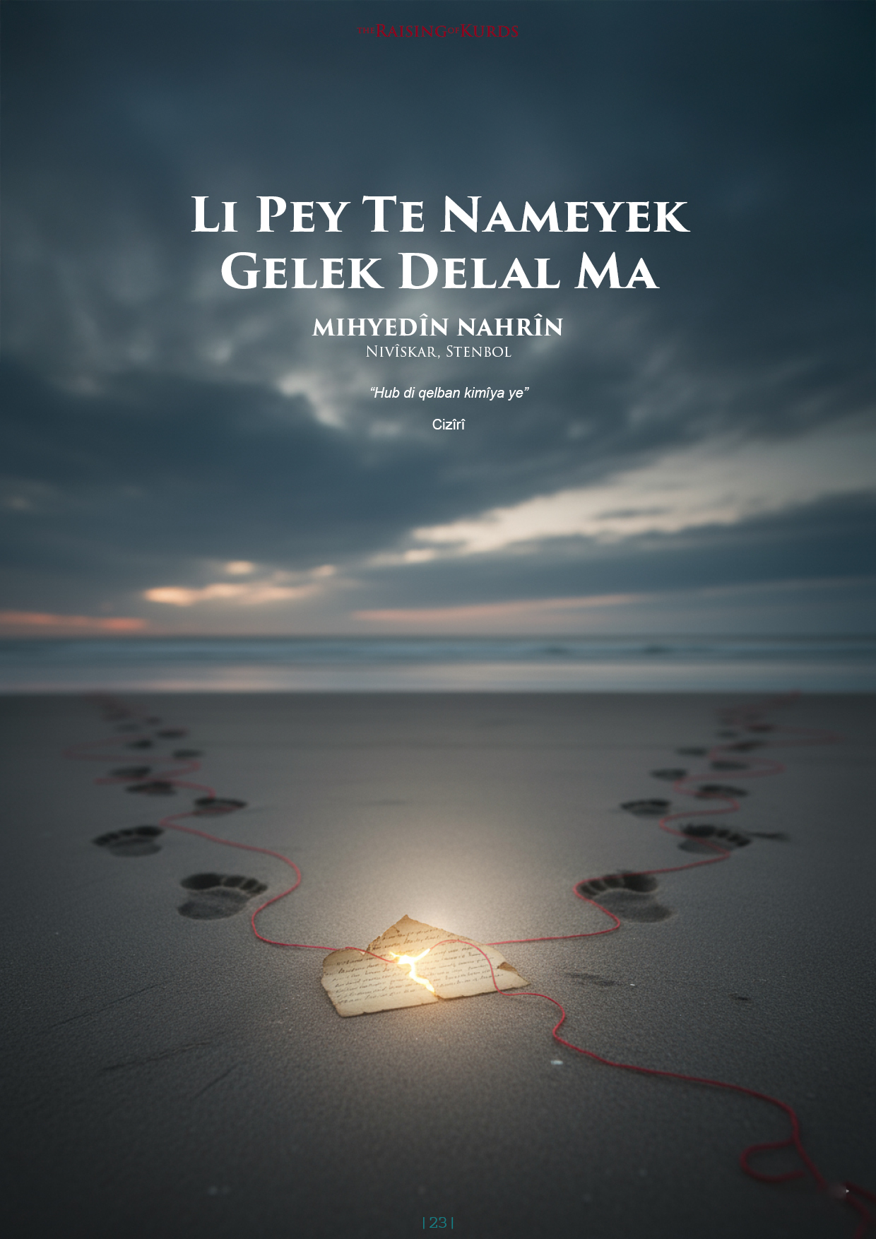 Belê dotmam piştî şeş an jî heft sal şûn de te peyamek şand. Peyama te nazik û bi dilgermî hatibû nivîsandin. Te helbestek Arjen Arî şandibû û di hundirê helbestê de te peyvek ji min pirsî bû. Piştî peyama te hê hêdî wekî çawa pîrepind tefna xwe vedide me jî wisa hêdî hêdî hevaltîya xwe, sohbeta xwe û parvekirinên xwe zêdekir û me hevaltîya xwe wekî pîrebindê hêdî hêdî honand. Hema di carekî de tu tevlî jîyana min bûyî û wekî heyva li ezman te jîyana min bi hebûna xwe ronîdar kir.